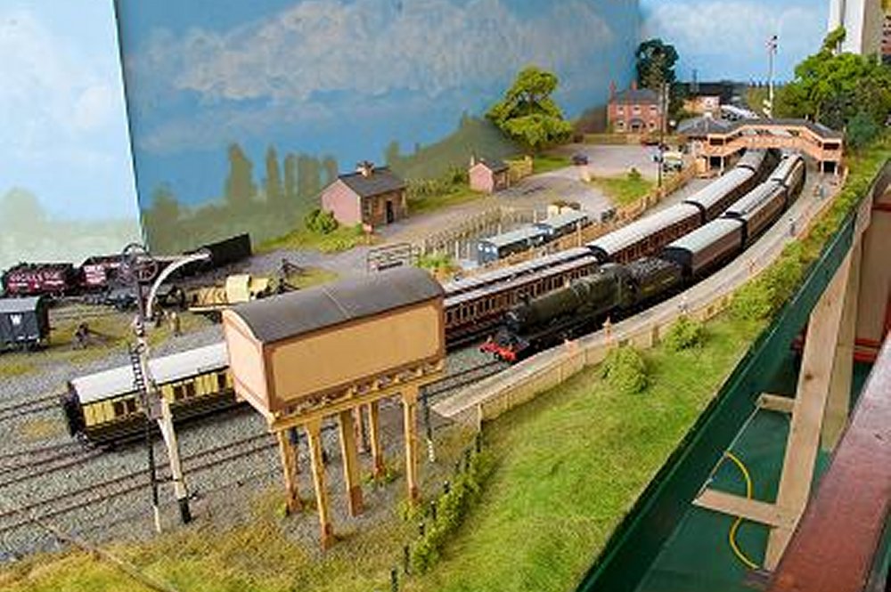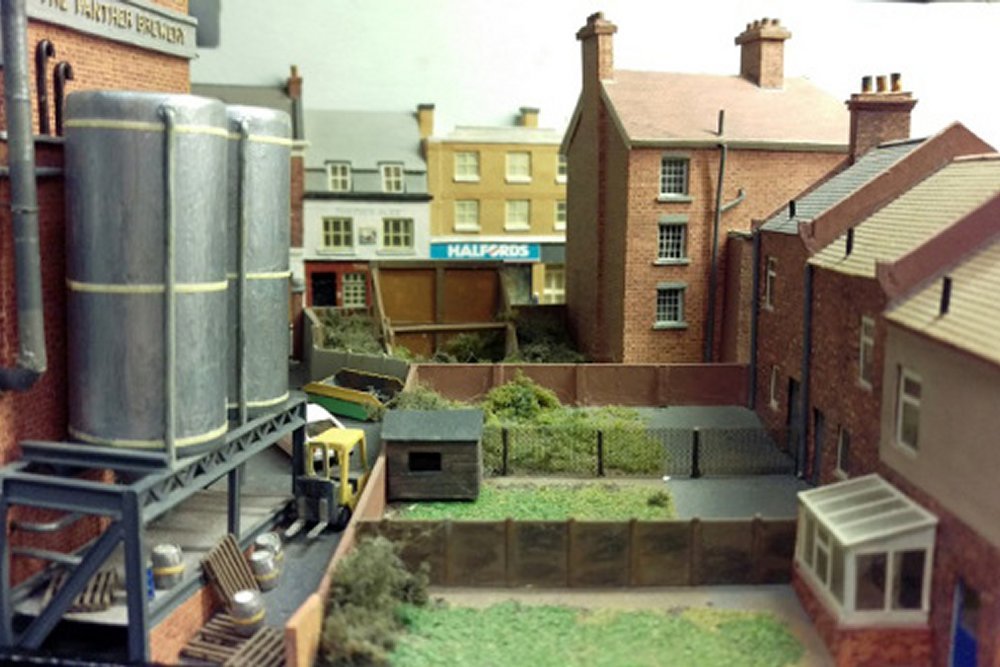 The hand painted backscene attempts to feature the townscape and topography of the area surrounding the original station.