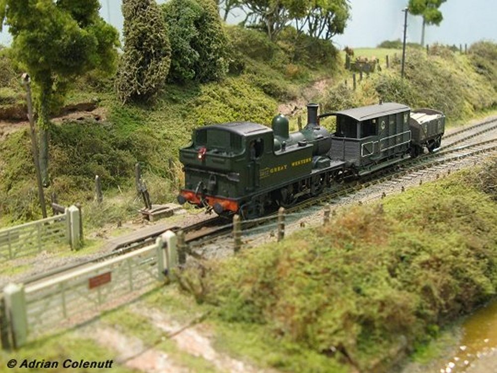 The ruling gradient on the line was 1 in 40 up from Bodmin Road, so that only locomotives with small driving wheels were normally used, and always chimney first to Bodmin, to keep the firebox crown covered with water - however we have allowed ourselves some modeller's licence in our choice of motive power, with occassional SR ones in addition to the GW ones, for variety.