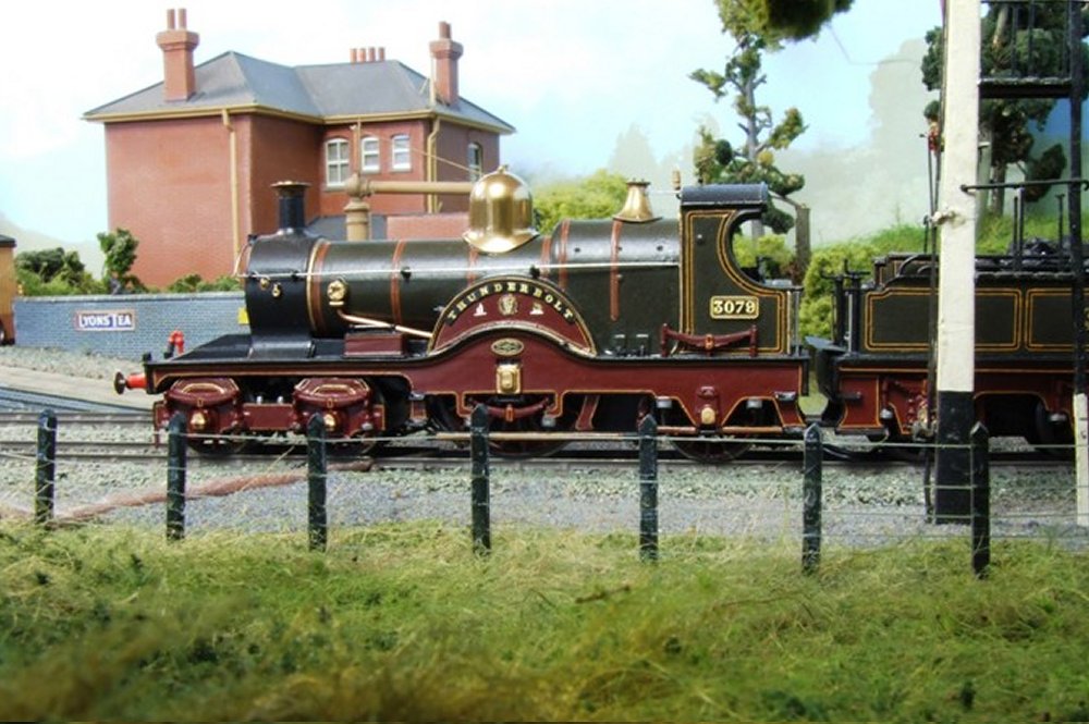 You can observe the following features: 1912 Lake (crimson) coaches, red distant signals and do look out for the very tall duplicate signals. Locomotives, stock and buildings are in the main kits or scratch built. Occasionally they will run one of Felicity's locomotives namely, Brunel and Thunderbolt both with big brass domes.