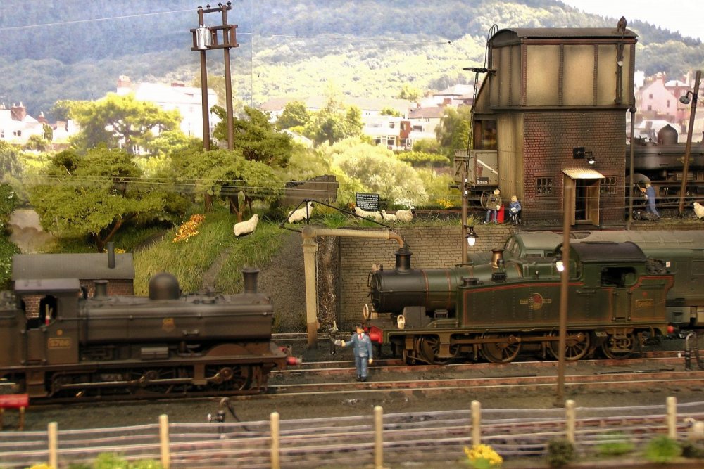 It lost the railway in 1964 and today is more famous for it's rugby team and male voice choir. The layout is as it might have been in the period 1925-1935, the LMS period, however for this show we have borrowed some LNWR stock and moved the period back to about 1900,where we can run GWR trains for a short while, as the line was used as a diversionary route due to the collapse of Cockett tunnel in1899.