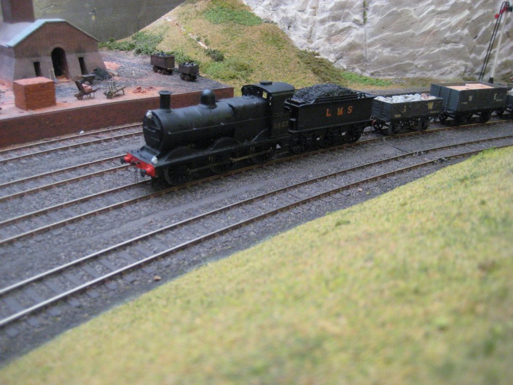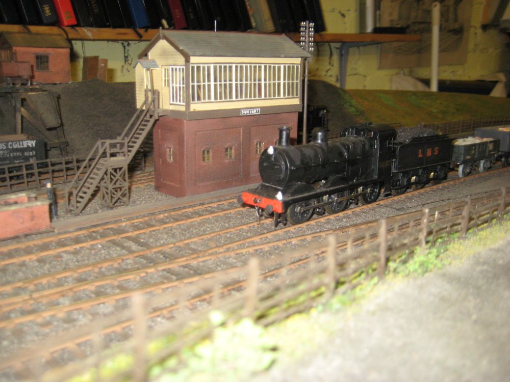The fiddle yard operator has plenty to do turning trains round, removing or placing stock, changing engines and operating the hidden end of the colliery lines. The colliery line has full wagons departing and empty ones arriving via the sidings behind the signal box.