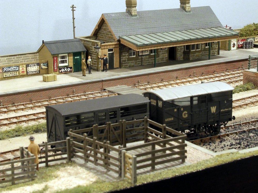 The model sets out to depict the station as it might have looked in the 1920s. Freight receipts are just about sufficient to keep the railway in profit although the meagre passenger service is hanging on by its fingernails. It is bulit to the finescale standards of the 2mm scale Association with almost everything being either kit or scratchbult.