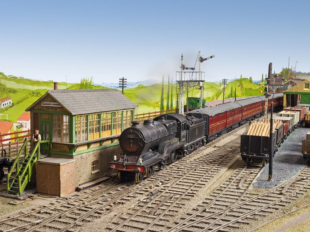 The OO section of the Cardiff Model Engineering Society is presenting Hardwick Grange. The layout was designed and built by Frank Dyer who also exhibited Borchester Market. The layout is 30 feet long including the fiddle yard but just 16 inches wide because it had to fit its original home in Frank's loft. There are six boards each leaning against its neighbour, only the station board has two legs.