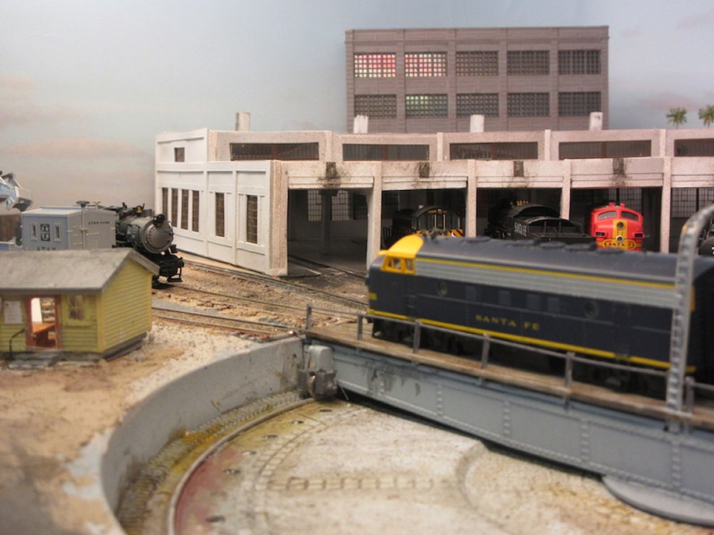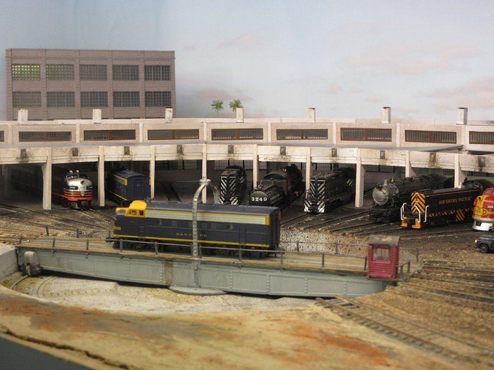 Roundhouse is a micro-layout that will form part of a Southern Pacific and Santa Fe joint line. It is an opportunity to display some N scale stock collected over the years, and to experiment with some 2mm modelling ideas. Track is a mixture of 2mm finescale, Atlas and Peco (in the hidden section). The structures are a mixture of scratch built, doctored kits and commercial detailing.