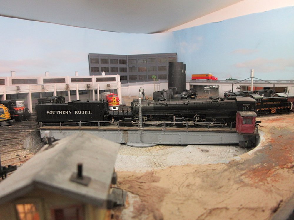 The sun beats down in southern California (or is it southern Texas?) port of Santa Margarita. In the shimmering heat an oil-burning locomotive shuffles onto the turntable and out on the exit track, stopping for some sand, water and fuel oil.