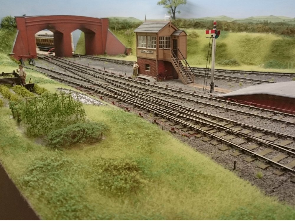 The layout is exhibited with the help of friends in the local Scalefour Society Area Group, also known as the Marches Finescale Group, in Shropshire. Despite the layout being entirely the owner's responsibility, there have been invaluable suggestions and help from other members of the Group, in particular Geoff Taylor who made some of the buildings, and the late John Bailey, who was influential in getting the trackwork built in time for its first exhibition in 2015, and whose LNWR locos are among those used on the layout. Others including Jim Roberts, Tim Lewis, Tudor Watkins, David Beale, Jeff George, David Sutton and Simon Bolton have contributed and are among members of the operating team along with Gavin's family.