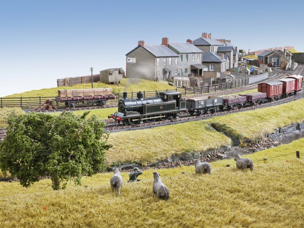 The locomotives and stock are built from etched brass or plastic kits with compensated chassis running on wheels and axles from Slaters.