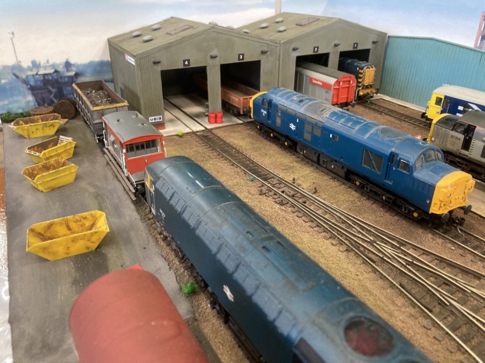 Control is by conventional wiring and Kent Panel hand held controllers with point operation to the viewing areas by "Tortoise" motors with Peco motors in the storage areas. Signals are MSE components adapted to accept solenoid operation.
