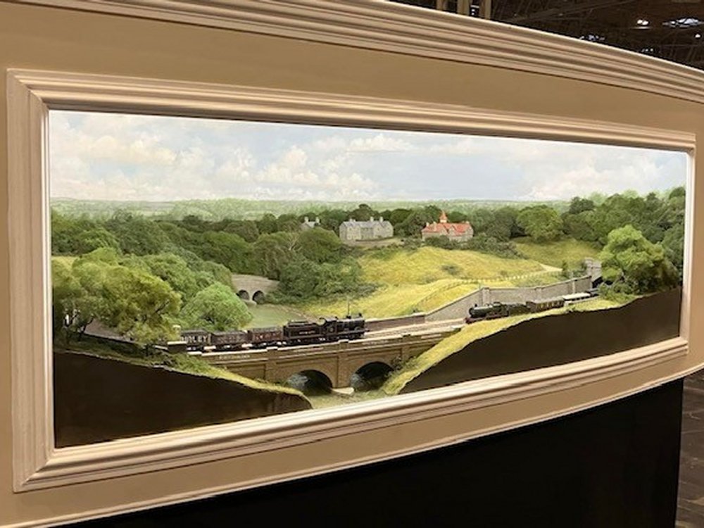This highly detailed diorama was built to showcase 3D scenic perspective modelling. The display / framing is set up to look like a 3D style painting in the "Constable" style...hence the layout's name. The scenery is sufficiently generic to be able to represent different parts of the UK and different eras by simply changing the rolling stock and key figures & vehicles. Look out for regular changes of eras during the show!