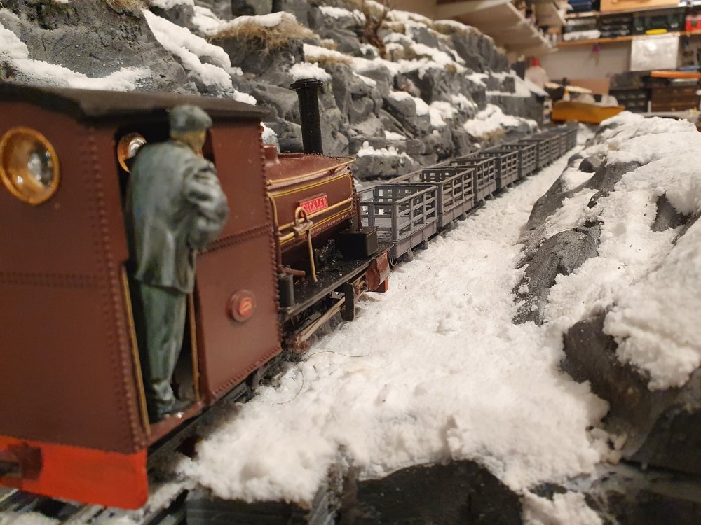 They are put together with standard gauge 16.5mm track to emphasize the layout being modelled as narrow gauge.